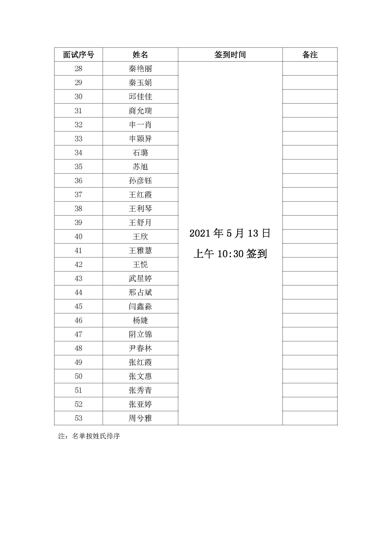 1、面試時(shí)間:2021年5月13日(周四)上午9:00。本次面試分為兩組,簽到時(shí)間不同,請(qǐng)各位考生自行查看附件表。